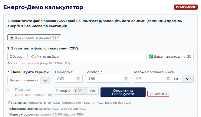 - Моделювання тарифів: У Демо-режимі ви можете самостійно змінювати параметри: